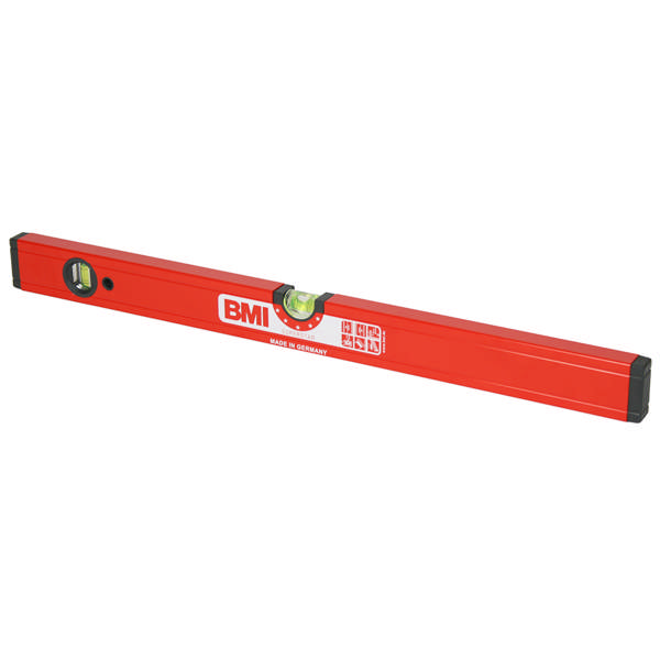 A professional heavy duty. powder coated aluminium box section level. with measuring surfaces machined on one edge. Magnified centre vial for an accurate and easy reading. Made in Germany.