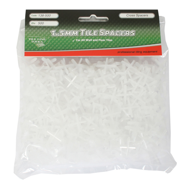 1.5mm x 500 1.5mm cross spacer for even spacing of wall tiles. Bag Sizes: 100. 500 & 1000